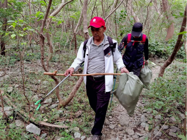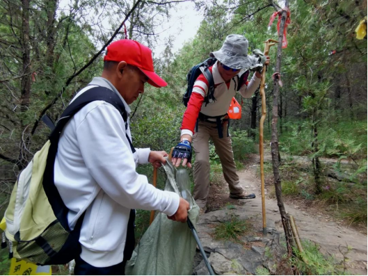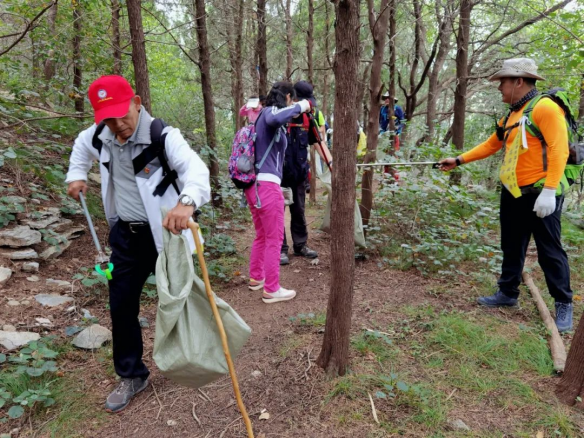 为净化济南自然景区生态环境,10月4日,国庆中秋长假即将结束前,“111志愿服务队”的迟人宝、杜立卫两位队员参加了“白云山及马蹄峪净化活动”。他们跟随户外徒步队,翻越山越岭,穿行峡谷,历时5个半小时,行程16公里左右,捡垃圾共十余个编织袋。