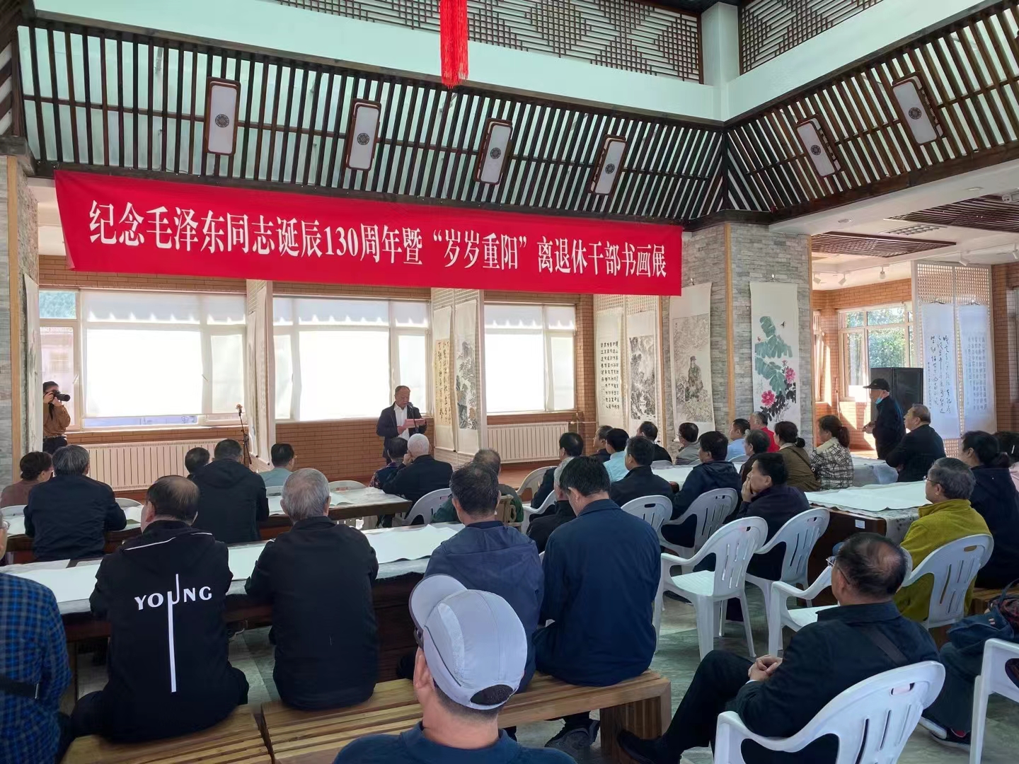 在毛泽东同志诞辰130周年和九九重阳节到来之际,由山东省人社厅、山东省自然资源厅、山东省审计厅三部门离退休干部党委主办,山东老年书画研究会三家分会承办的纪念毛泽东同志诞辰130周年暨“岁岁重阳”离退休干部书画展,于10月20—28日在山东省文化馆举办。