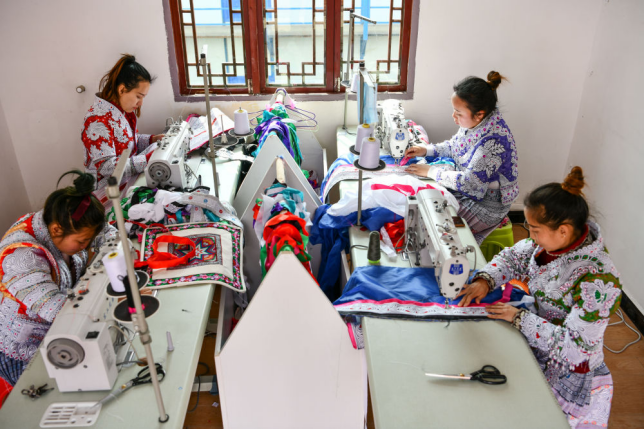 清晨,贵州省黔西市化屋村一派忙碌景象。非遗工坊里,绣娘们飞针走线,正赶制一批苗绣服饰订单。