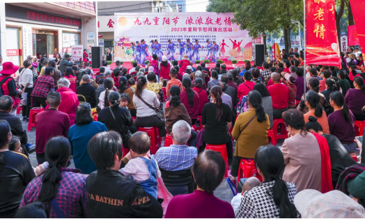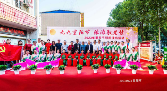 金风送爽,醉美重阳。为弘扬敬老、孝老的传统美德,营造至爱至善、和美向上的尊老爱老文化氛围,湖南省岳阳市老干部(老年)大学在10月23日重阳节当天,组织学员赴岳阳经济技术开发区八字门社区,开展“九九重阳节 浓浓敬老情”慰问演出活动。岳阳市委老干部局副局长赵奇志,市老干部(老年)大学校长宋仲斌,岳阳经开区党群工作部副部长邓忠东,通海路管理处工委书记管利平,市老干部(老年)大学校领导李斌、陈晓君、巢合,岳阳经开区老干办李世敏、谭荣华等出席。八字门社区附近200多名群众、市老干部(老年)大学200余名学员参加当天活动。
