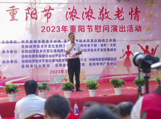 此次慰问演出活动由岳阳市委老干部局、岳阳市老干部(老年)大学和岳阳经济技术开发区共同主办,中粮到家岳阳精品店等企事业单位提供赞助。活动开展前,岳阳市委老干部局和市老干部(老年)大学相关人员慰问了人民英雄张超的父亲张胜华等10位特困老人。这次活动丰富了社区老年人的精神文化生活,让老年人切实感到社会的温暖,进一步倡导了敬老、爱老、助老的社会文明风尚。