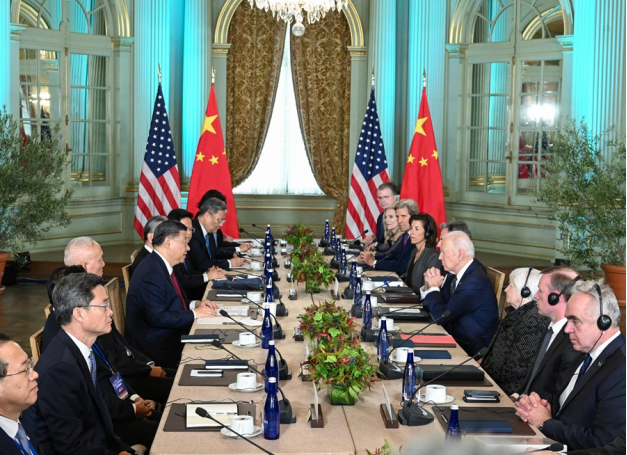 当地时间11月15日,国家主席习近平同美国总统拜登在斐洛里庄园举行中美元首会晤。新华社记者 丁林 摄