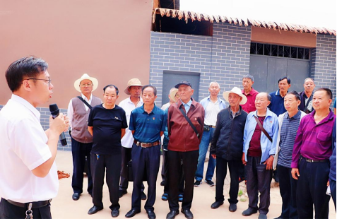 图为组织老干部参观牟定县江坡镇大村党建引领基层治理示范点,通报有关情况