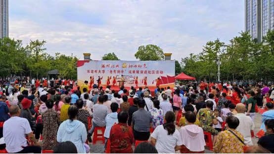 进社区展演活动历时近一个月,为组织开展好此次活动,市委分管领导高度重视亲自审定活动方案,市委老干部局领导精心组织策划指导,百忙之中抽时间莅临活动现场,与社区广大居民一起观看演出,询问察看社区情况,沉浸式服务指导基层治理;市老年大学领导在节目编排、人员组织、演出现场安全勘察等方面亲力亲为,参与创作特色节目淮河琴书《珠城新景象》等作品撰稿,加班加点一遍遍修改、一遍遍打磨;参加演出的艺术团师生演职人员们更是不畏炎热,辛勤付出,一个个节目精心编排,一次次排练汗如雨下……在大家的共同努力下,为社区居民送上了一场场精美的文艺节目。
