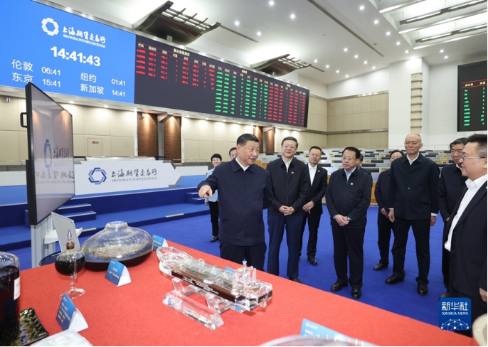 28日下午,习近平一下列车就前往上海期货交易所考察。他结合电子屏幕和重要上市品种交割品展示,听取交易所增强全球资源配置能力、服务实体经济和国家战略等情况介绍,了解交易所日常资金管理和交割结算等事项。习近平强调,上海建设国际金融中心目标正确、步伐稳健、前景光明,上海期货交易所要加快建成世界一流交易所,为探索中国特色期货监管制度和业务模式、建设国际金融中心作出更大贡献。