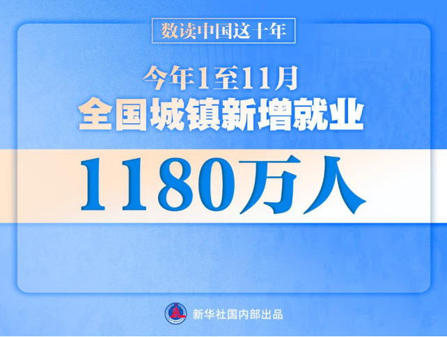 就业规模不断扩大。2013年以来,全国城镇新增就业人数连续保持在1100万人以上。今年1至11月,全国城镇新增就业1180万人。我国就业形势保持总体稳定,调查失业率总体低于预期控制目标。