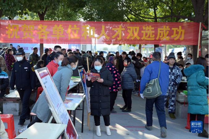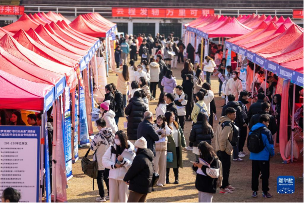 2023年12月1日,湖南省2024届高校毕业生就业专场招聘会在湖南师范大学体育场举办,吸引全国300余家用人单位,数千名学生参与。新华社记者 陈思汗 摄