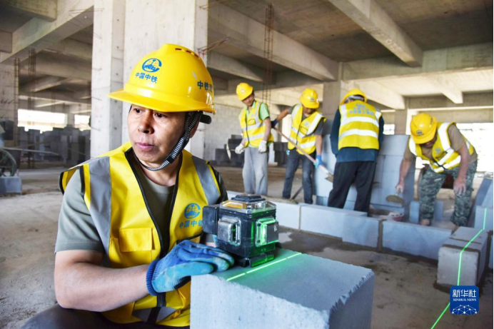 2023年10月5日,中铁建工建设者在项目工地上忙碌。新华社记者 李紫恒 摄