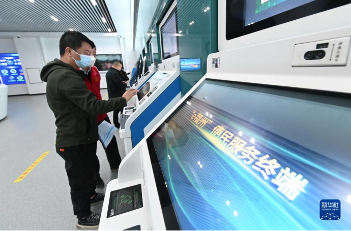 2023年12月1日,市民在“e福州”便民服务终端自助机上查询打印个人企业养老保险历年缴费情况。新华社记者 林善传 摄