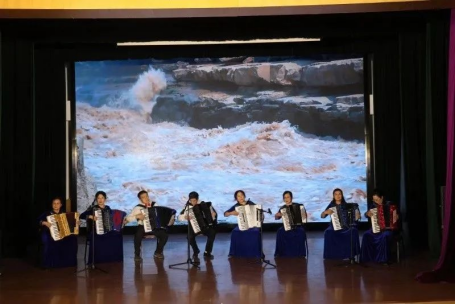 手风琴合奏《万泉河水清又清》和《歌唱祖国》在欢快的旋律中让大家感受到了生活的美好;舞蹈《万疆》则通过舞姿展示了祖国繁荣昌盛的景象。