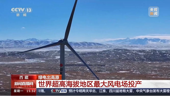 超高海拔,一般是指海拔高度在3500米到5500米之间。1月1日上午,世界超高海拔地区最大的风力发电场——那曲欧玛亭嘎100兆瓦风电项目,正式投入运行。一年就可以向那曲市送电2亿度,满足23万人一年的用电需求。节约标煤约6万吨,减少二氧化碳排放量约20万吨。