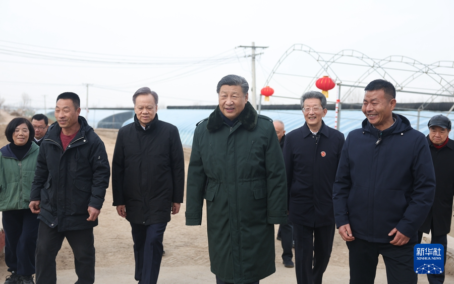 2月1日至2日,中共中央总书记、国家主席、中央军委主席习近平来到天津,看望慰问基层干部群众。这是1日上午,习近平在西青区辛口镇第六埠村考察,实地察看去年洪涝灾害后当地农业生产恢复等情况。新华社记者 鞠鹏 摄