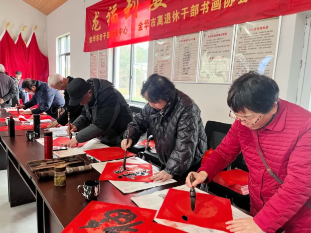 新春临近,年味渐浓,为深入践行“四下基层”深化开展“大走访大调研大服务大解题”活动,营造欢乐喜庆的春节氛围,近日,浙江金华市老干部活动中心和金华市离退休干部书画协会联合开展“春风送暖 龙福到婺”走基层银领志愿服务活动。本次活动送春联、送医疗到婺城区、金东区和开发区的村、社区共9场次,共书写赠送春联近3000余幅,医疗服务2000余人次,让居民群众感受节日的温暖和喜庆氛围。