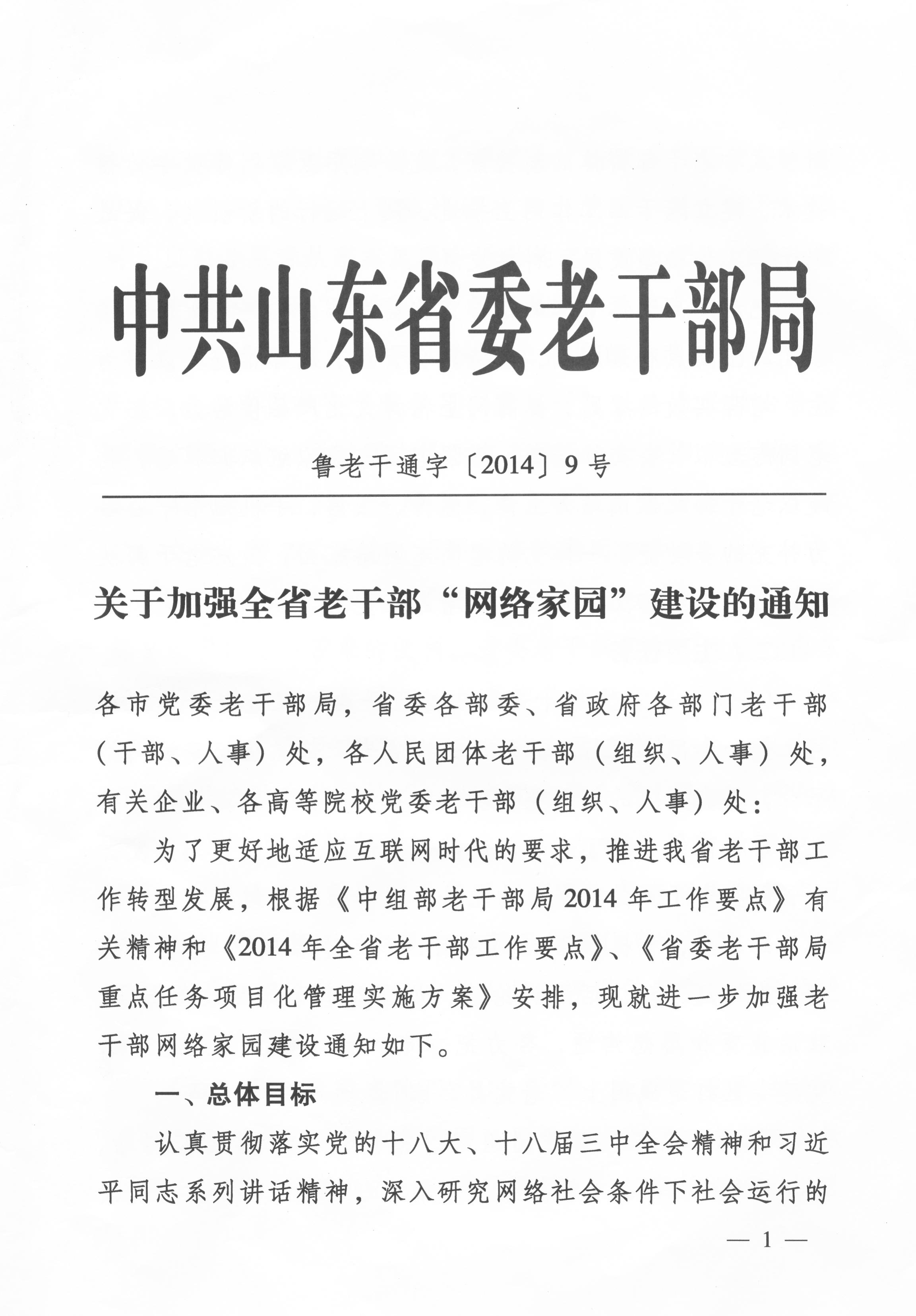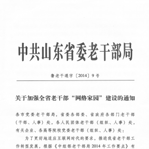 现将省委老干部局《关于加强全省老干部“网络家园”建设的通知》(鲁老干通字[2014]9号)转发给你们,请结合各自实际,认真抓好贯彻落实。
