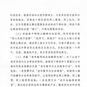 积极主动地运用信息化手段开展老干部工作,是时代的要求,也是广大老干部的现实需要。各级老干部工作部门要重视和加强老干部网络家园建设,做好省老干部之家网站老干部党建板块老干部工作网站或网页。要弘扬先进文化,丰富广大老干部、老党员的精神生活,发挥网络家园作用,通过网络阵地及时宣讲大政方针,通报重要情况,引导舆论导向,展示学习成果,深化沟通交流,开拓老干部网上精神文化空间。要资源共享,促进老干部组织网上整合、网上运行,强化党组织网上运行的理念,建设以网上党建工作系统为基础的网络教育阵地。要营造氛围,深入开展“老年数字化生活畅享行动”,确保网络家园健康有序运行。