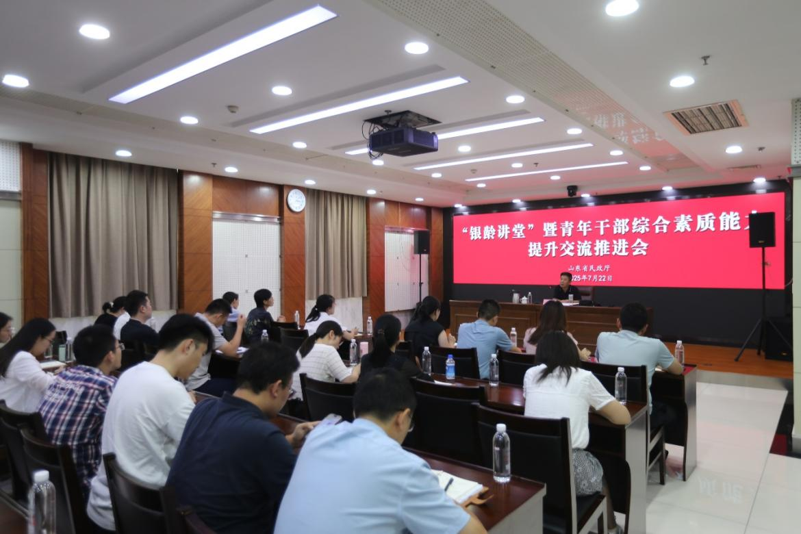 7月22日,山东省民政厅第三期“银龄讲堂”暨青年干部综合素质能力提升交流推进会在省福利彩票发行中心举行。厅党组成员、副厅长王树山出席并讲话。省福利彩票发行中心向省民政厅青年理论学习小组全体成员赠书活动同时举行,厅人事处、机关党委、离退休干部处、省福利彩票发行中心主要负责同志等参加活动。
