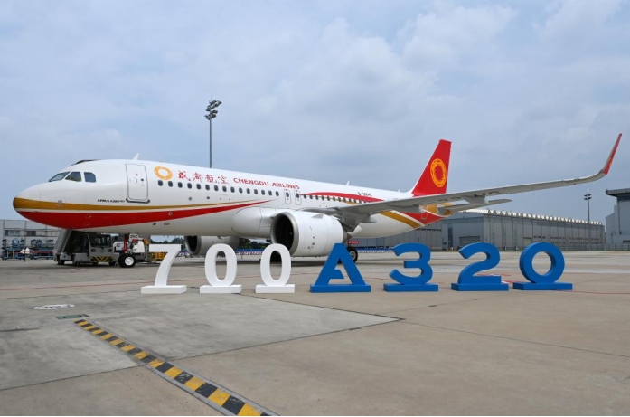 2024年7月8日,位于天津的空中客车A320系列飞机亚洲总装线交付第700架A320系列飞机。新华社记者 李然 摄