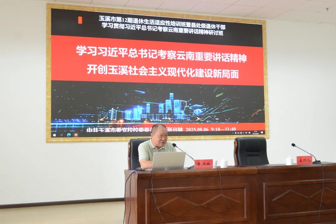 8月6日至8日,云南省玉溪市第十二期退休生活适应性培训班暨县处级退休干部学习贯彻习近平总书记考察云南重要讲话精神研讨班举办。培训班聚焦离退休干部工作实际和老同志需求,精准上好“三堂课”,帮助新退休干部迈好“人生转型”第一步,引导他们尽快适应退休生活,继续发挥余热助力经济社会发展,为党的事业增添正能量。