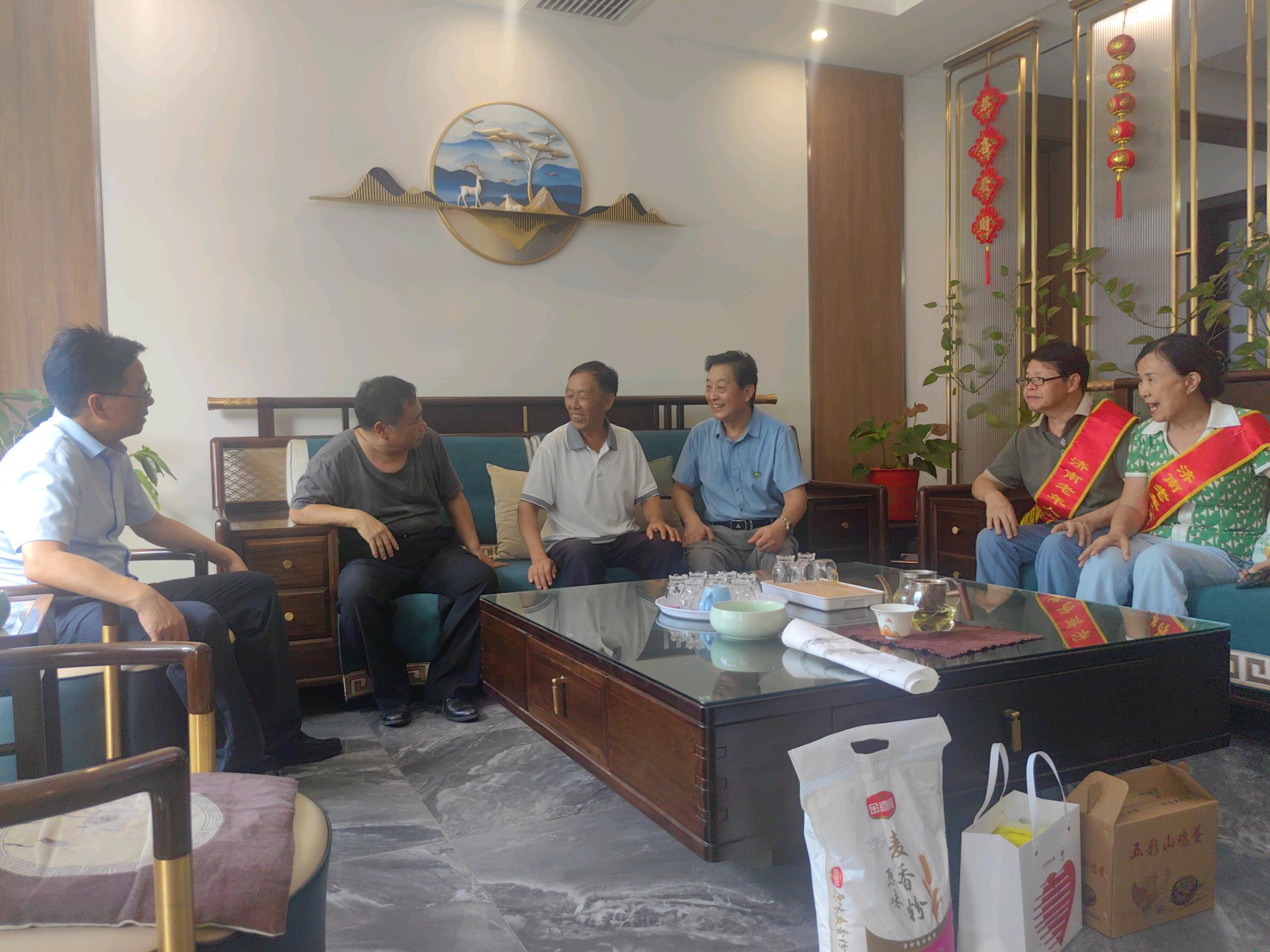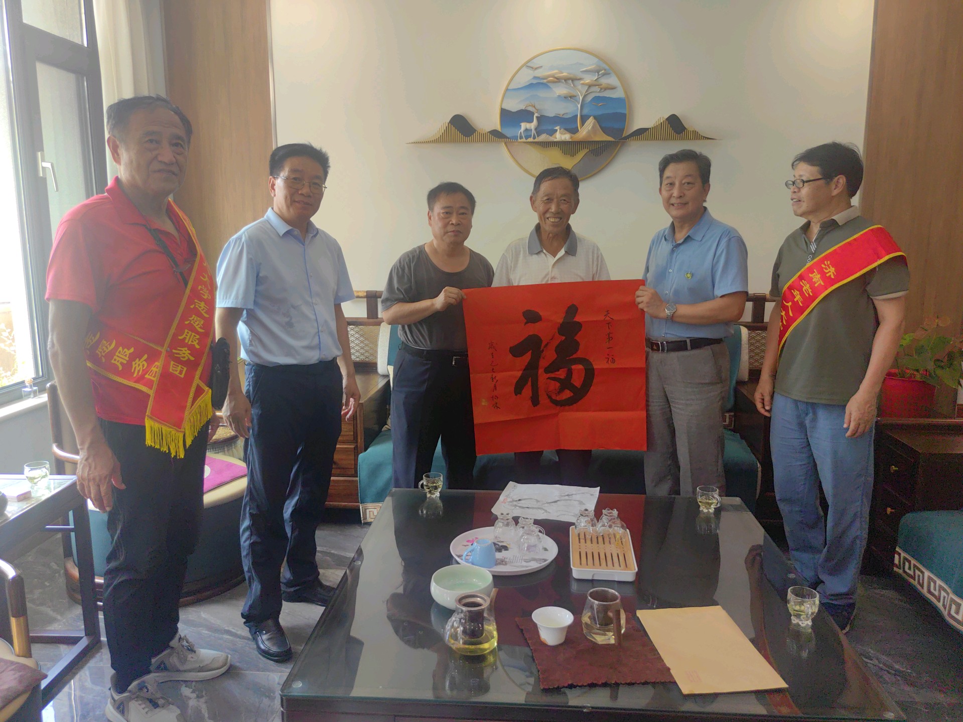 活动现场暖意融融,氛围热烈。志愿服务团的同志们首先将关注的目光投向村中的老支书和老干部,与他们亲切交谈,嘘寒问暖,详细了解他们的身体和生活状况,为他们送上饱含祝福的书画作品。