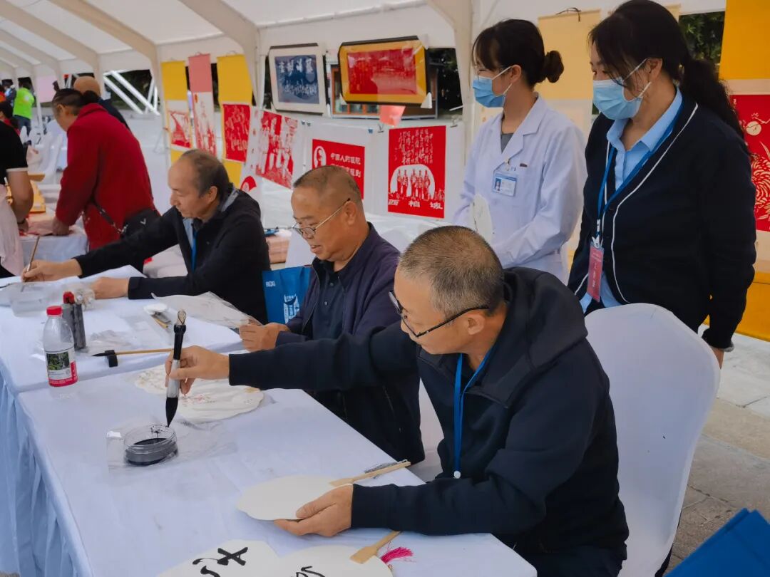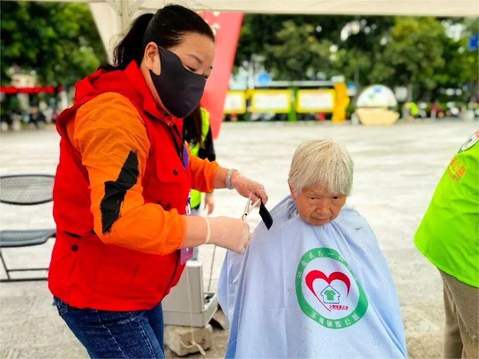 在广场志愿服务区,来自老干部诗书画协会的书画展和志愿者书绘赠送100余个扇面格外受群众热宠。夕阳红志愿者协会的义诊、义剪、法律咨询、“晚霞情缘”等接地气的志愿服务,很是受群众欢迎,30多名银龄志愿者们也是忙得不亦乐乎,活动共为群众义剪51人、义诊60多人、发出《老年人健康文明生活方式66条》手册和科学防癌抗癌资料100余份。