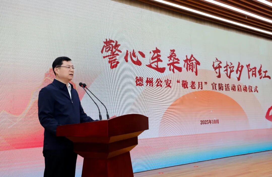 10月10日,在全国第16个“敬老月”到来之际,由山东省养老协会、市老龄工作委员会、市委老干部局、市公安局、市民政局、国家金融监督管理总局德州金融监管分局等联合主办,德州老年大学、中国工商银行德州市分行、恒丰银行股份有限公司德州分行、中华联合财险股份有限公司德州中心支公司承办的德州公安“敬老月”宣防活动启动仪式在德州老年大学成功举办。副市长、市公安局局长滕世雷,中国工商银行山东分行党委委员、副行长金滨,省养老协会秘书长韩晓明,市委组织部副部长、老干部局局长张云生,市民政局党组书记、局长卢明鹏,国家金融监督管理总局德州金融监管分局党委委员、副局长张冠龄以及市直相关单位、金融部门负责同志,老年大学师生、民辅警代表共100余人参加活动。