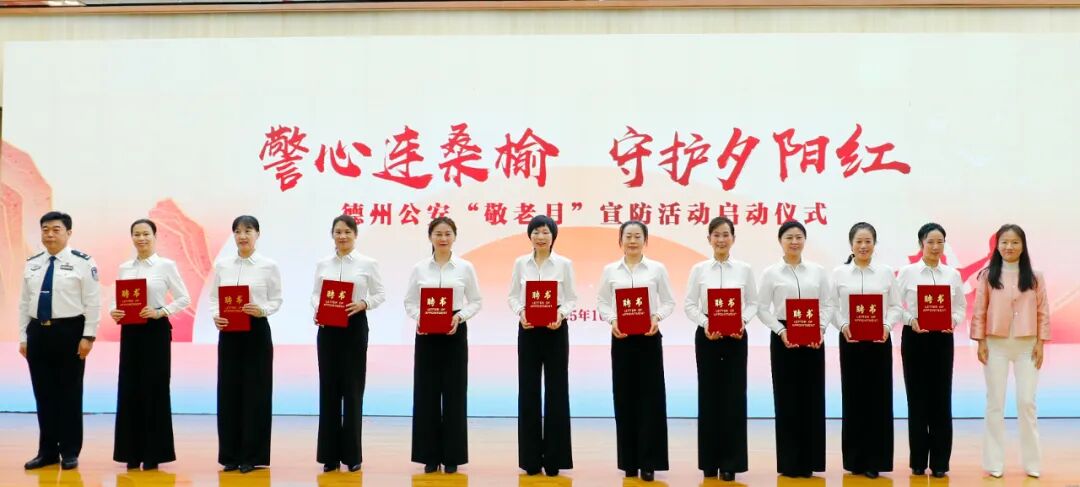 活动现场,省养老协会秘书长韩晓明,市公安局党委委员、副局长鲁英杰共同为5名反电信网络诈骗宣传大使、5名防范非法金融活动宣传大使颁发聘书。这10位大使将发挥“银龄优势”,参与宣防活动,与公安机关共同织密安全防护网。德州老年大学教师赵莹作为宣传大使代表发言,呼吁老年朋友“不轻信、不透露、不转账”,共同守护老年幸福。