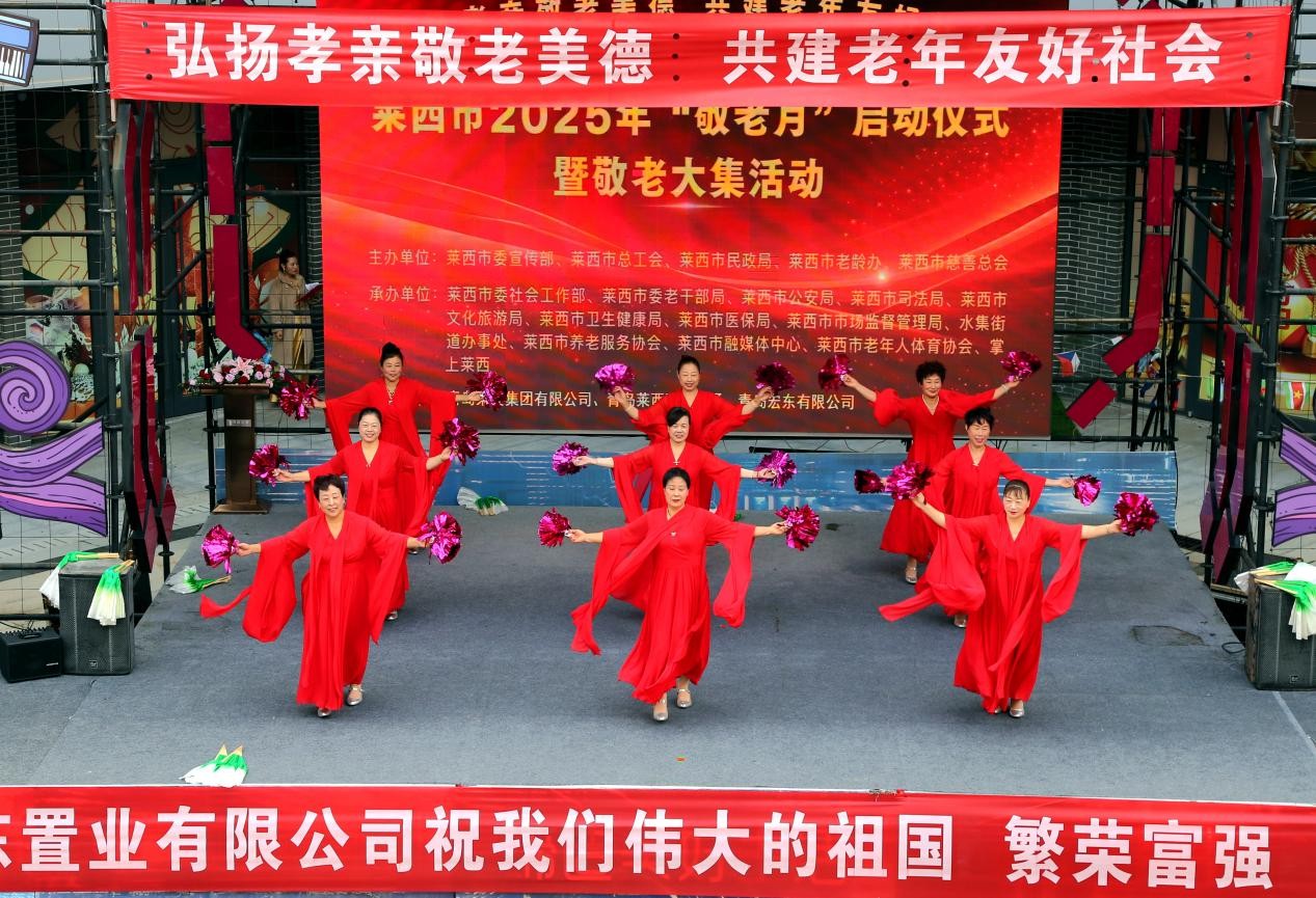 10月18日上午,山东省莱西市万达广场熹街彩旗飘扬 ,欢声笑语,热闹非凡。莱西市老体协组织的太极拳、舞蹈等节目在此兴趣盎然展演,助力由莱西市委宣传部、市总工会、市民政局、市老龄办、市慈善总会主办的“敬老月”启动仪式暨敬老大集活动,吸引了众多市民兴高采烈的前来观看。