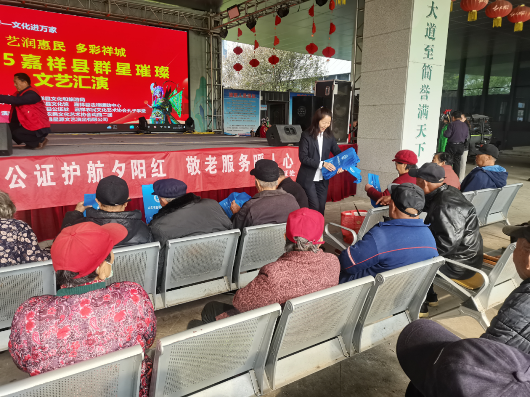 嘉祥县司法局在县文化广场举办公证普法文艺汇演,开展“公证护航夕阳红·敬老服务暖人心”普法宣传活动。