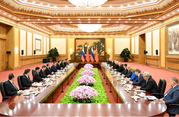 习近平指出,今年以来,中俄关系锚定更高水平、更高质量发展目标,在风高浪急的外部环境中笃定前行。维护好、巩固好、发展好中俄关系,是双方的战略抉择。我同普京总统在莫斯科和北京两次会晤,就中俄关系中的战略性、全局性问题深入交流,作出新的谋划和部署。双方要保持密切协调,落实好我同普京总统达成的重要共识,着眼两国和两国人民的根本利益,把中俄合作的蛋糕做好,也为世界和平与发展作出新的更大贡献。