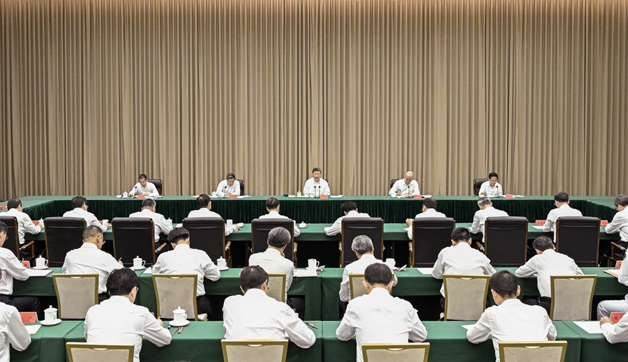 11月6日,中共中央总书记、国家主席、中央军委主席习近平在海南三亚听取海南自贸港建设工作汇报,发表了重要讲话。新华社记者 谢环驰 摄