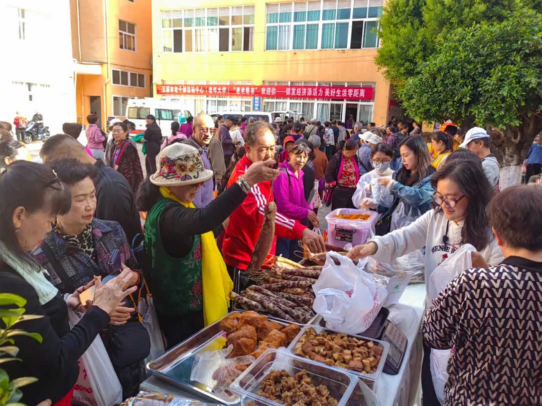 展厅外的“惠老集市”,更是把“贴心服务”送到了老同志身边,让老同志们交口称赞。各个服务点位前,志愿者们的笑脸与热情,让整个活动中心充满暖意:义诊专区里,“蓝马甲行动——乐龄志愿服务队”细心地帮助老同志在手机上学习挂号,如何预防阿尔兹海默症;玉溪市第二人民医院的医务人员为老同志耐心解答每一个健康疑问,“您这血压很稳定,平时多注意清淡饮食,锻炼身体”的叮嘱,像家人般亲切,爱尔眼科的医生为老同志认真地检查眼睛、眼压,叮嘱用眼卫生和习惯;义剪点位上,剪刀起落间,老同志们的头发变得整齐利落,看着镜子里精神的自己,脸上露出了孩童般的笑容;书赠书画区,老干部诗书画协会的成员们挥毫泼墨,根据老同志们的心意题写作品,“福寿康宁”“吉祥如意”的字样,承载着最真挚的祝福;广电工作人员把电话号码留给每一个前来咨询画面不清晰,好多年看不了电视的老人,预约好时间上门调试设备;智慧养老产品展前,老同志们好奇地触摸着适老化器具,感受科技带来的便捷;玉溪酱丰园现场制作起了香草酸汤给大家品尝,香草的香味在空气中弥漫,越发勾起了人们对食物的热爱;中粮集团的面条、杂粮……市供销社的蜜柚、有机生态大米……华宁黄师傅的腌炸馍、腌香肠……将军山有机苹果……每一项服务都精准对接老同志需求,让大家足不出户就享受到满满的便利与关怀。