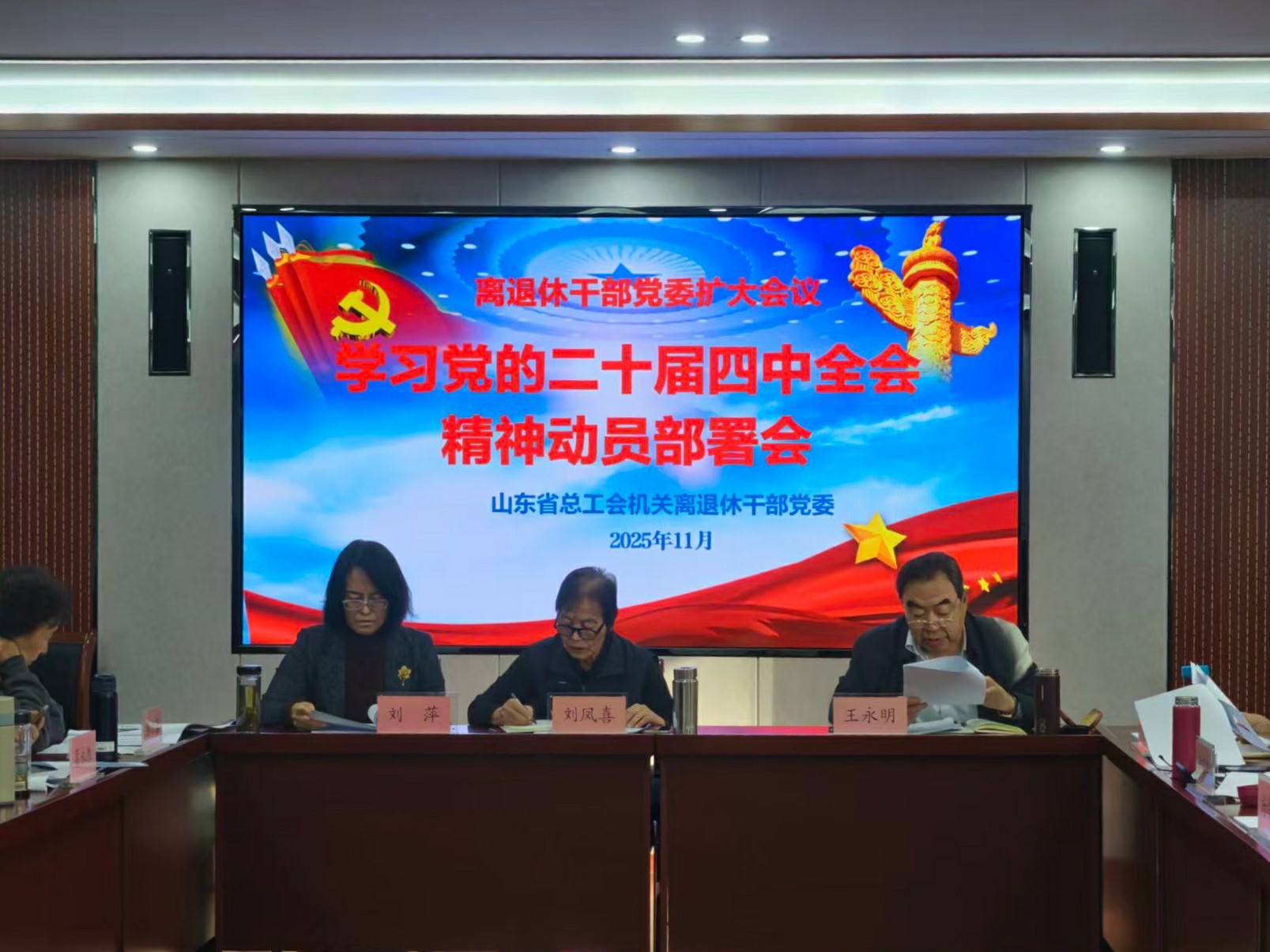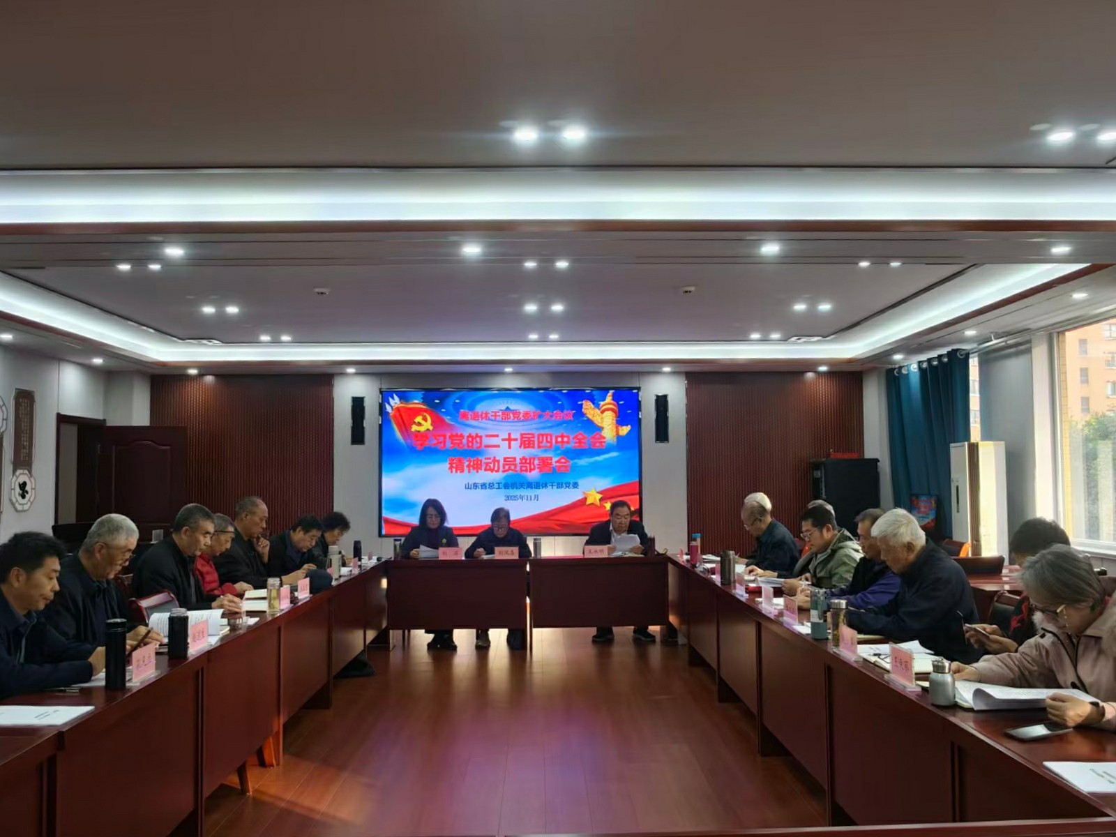 11月13日下午,山东省总工会机关离退休干部党委召开党委扩大会议,专题部署党的二十届四中全会精神学习宣传贯彻工作。离退休干部党委书记刘凤喜主持会议。离退休干部党委委员、各党支部书记、支部委员及离退休干部处工作人员等20余人参加会议。